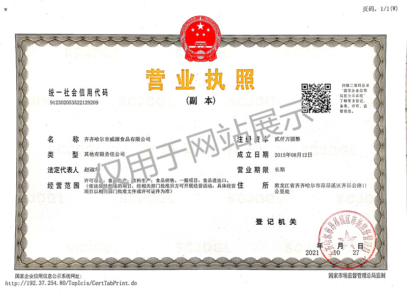 吉威源食品有限公司是齊齊哈爾著名企業(yè)集團(tuán)華威集團(tuán)有限公司全資新建的,企業(yè)占地18.2萬(wàn)平方米,一期建成2萬(wàn)余平方米生產(chǎn)及辦公區(qū)。有國(guó)內(nèi)一流先進(jìn)成套生產(chǎn)設(shè)備近百臺(tái)套,組成自動(dòng)化程度很高的生產(chǎn)流水線(xiàn)。安全、衛(wèi)生、環(huán)保配套設(shè)施齊全,全面達(dá)到國(guó)家有關(guān)標(biāo)準(zhǔn)要求。企業(yè)已經(jīng)全面完成一期建設(shè),滿(mǎn)負(fù)荷產(chǎn)能將達(dá)到每年萬(wàn)噸成品產(chǎn)出規(guī)模,投產(chǎn)后將成為拉動(dòng)區(qū)域綠色種植業(yè)及養(yǎng)殖業(yè)發(fā)展的領(lǐng)軍型企業(yè)。